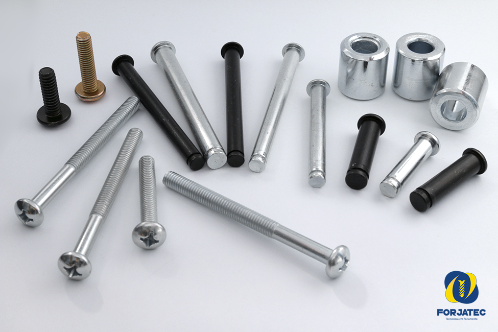 BUCHAS Ø17 à Ø20 x 10mm à 35mm de comprimento. PINOS Ø2,92 à Ø 7,94mm x10 à 75mm de comprimento. PARAFUSOS – cabeças especiais, fenda, phillips: M3 à M8 x 10mm à 75mm de comprimento. Ø3/16” à Ø1/4” x 5/8” à 3”.